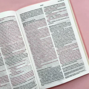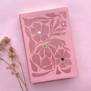 Kit con Biblia NTV Rosada Letra Grande/ Valor Premium (Palo rosa) y cuaderno devocional mis planes