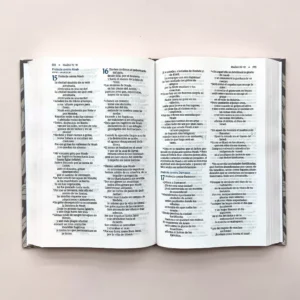 Biblia NVI compacta – Pasta dura tela flores gris (Elige solo Biblia o con kit)