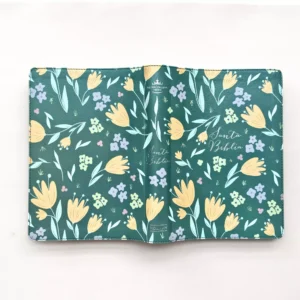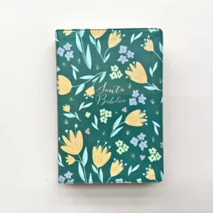 Biblia RV60 – Verde flores tipo piel (Elige solo Biblia o con kit)