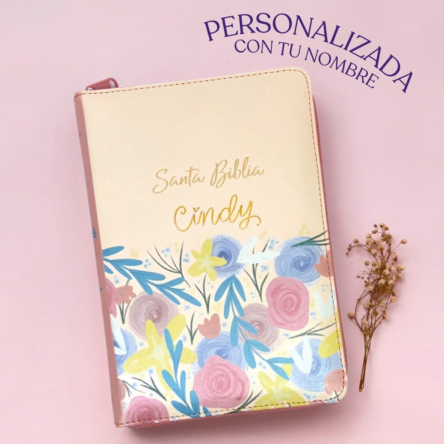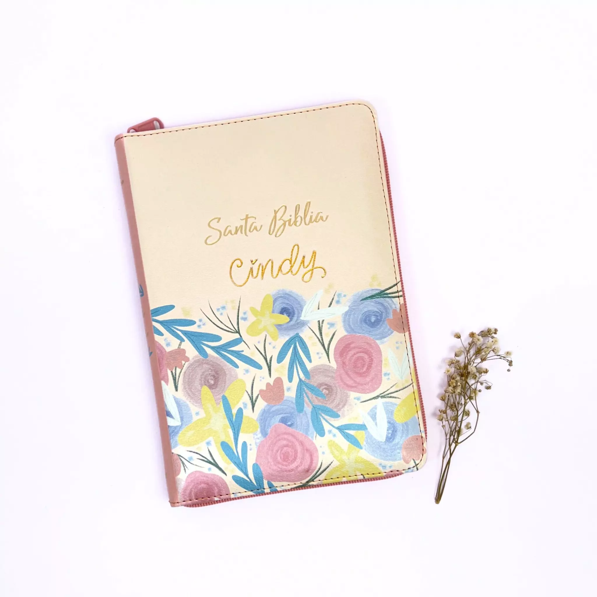 Biblia RV60 – Beige flores letra grande (Personalizada)