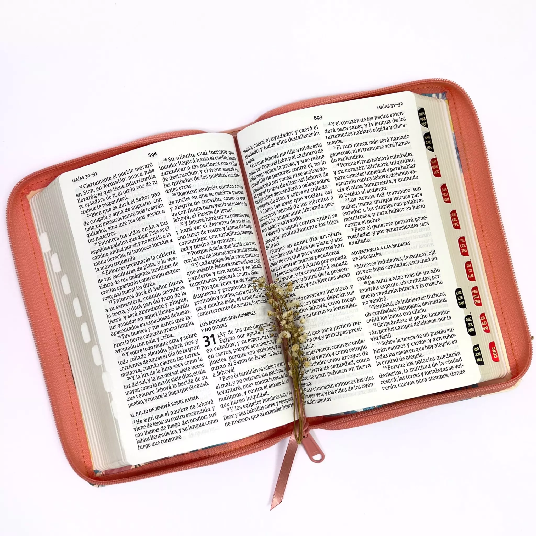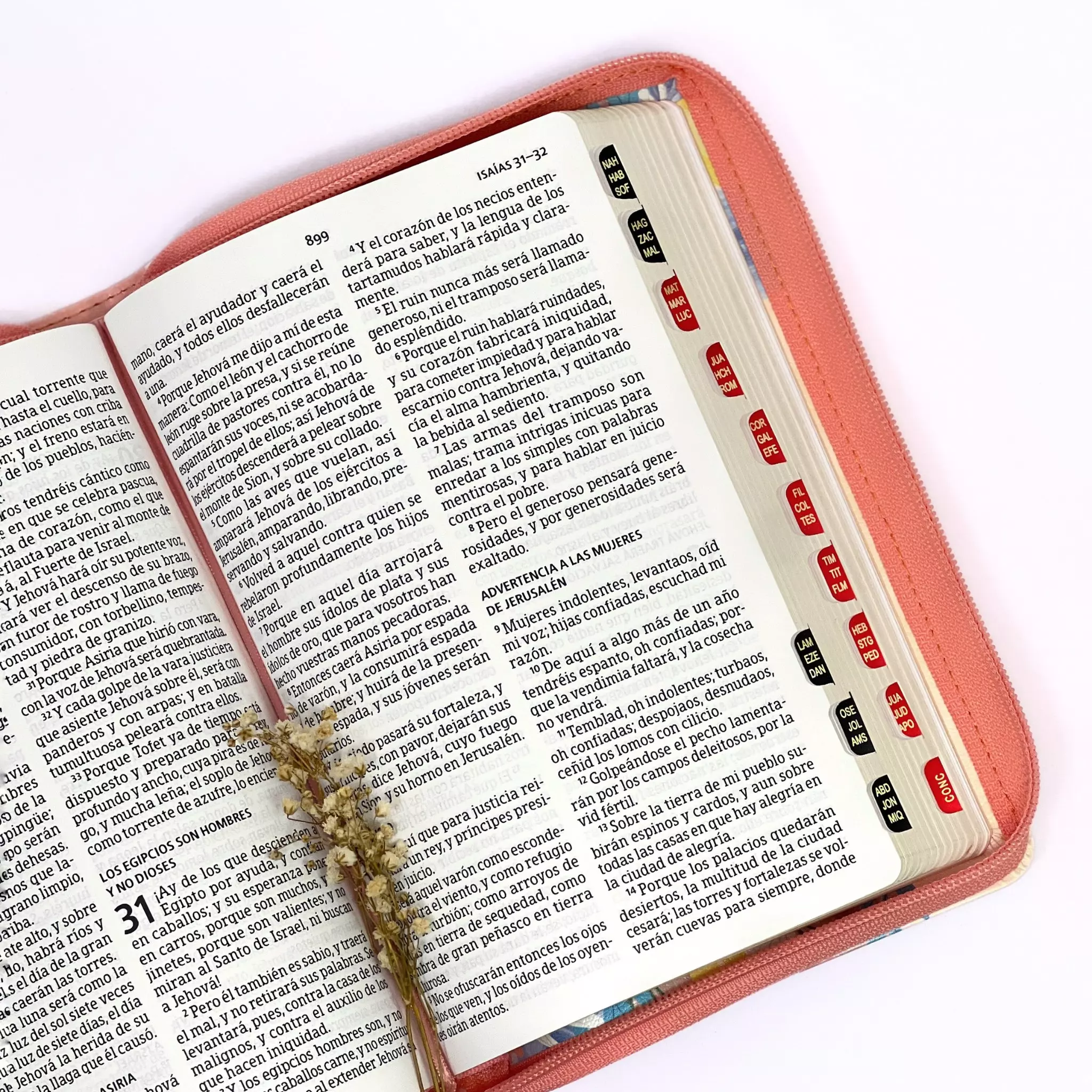 Con letra grande de 12 puntos en formato manual, la lectura fluye sin esfuerzo. Su tamaño la hace fácil de transportar sin sacrificar comodidad visual, y su cierre protege las páginas mientras el índice te permite encontrar cualquier libro en segundos.