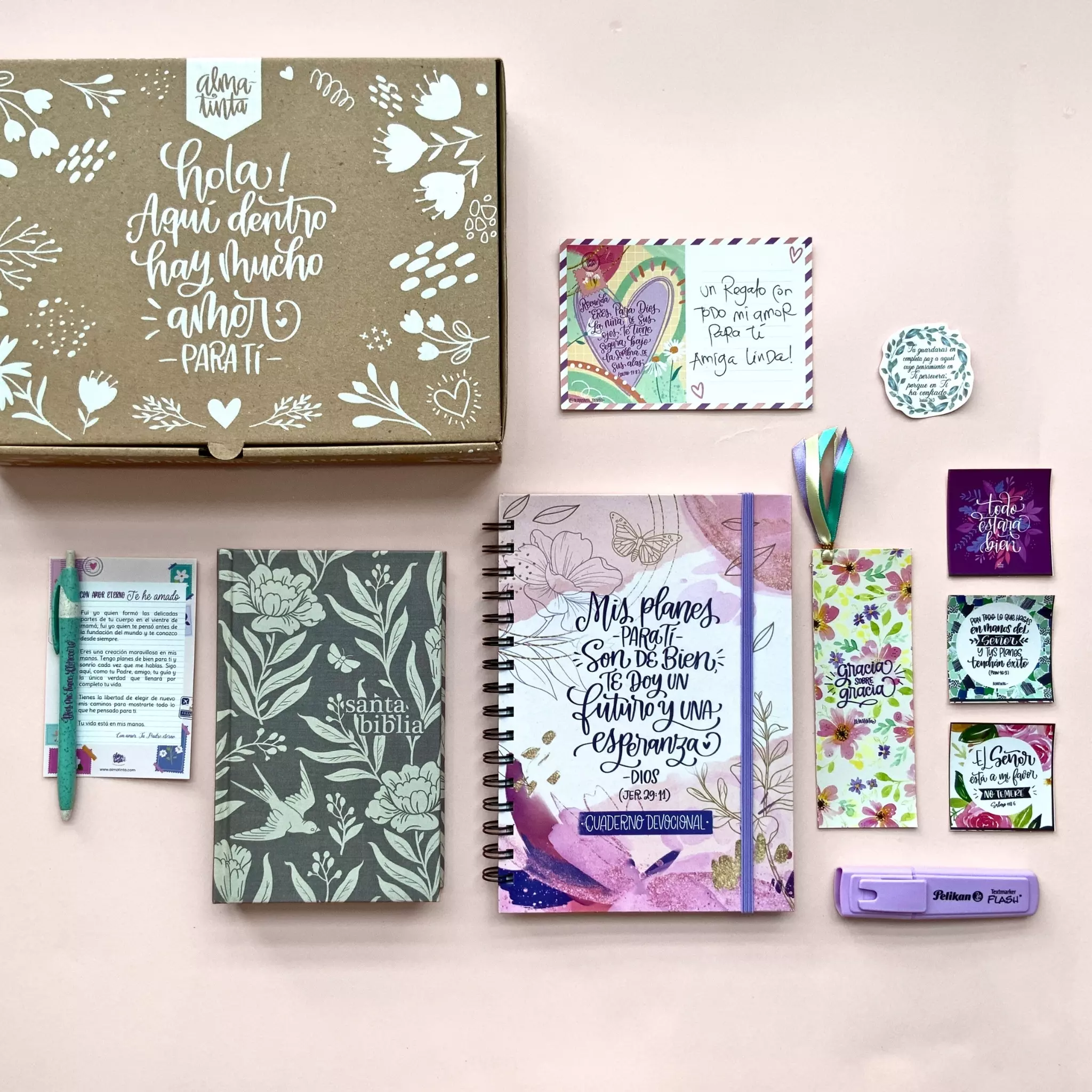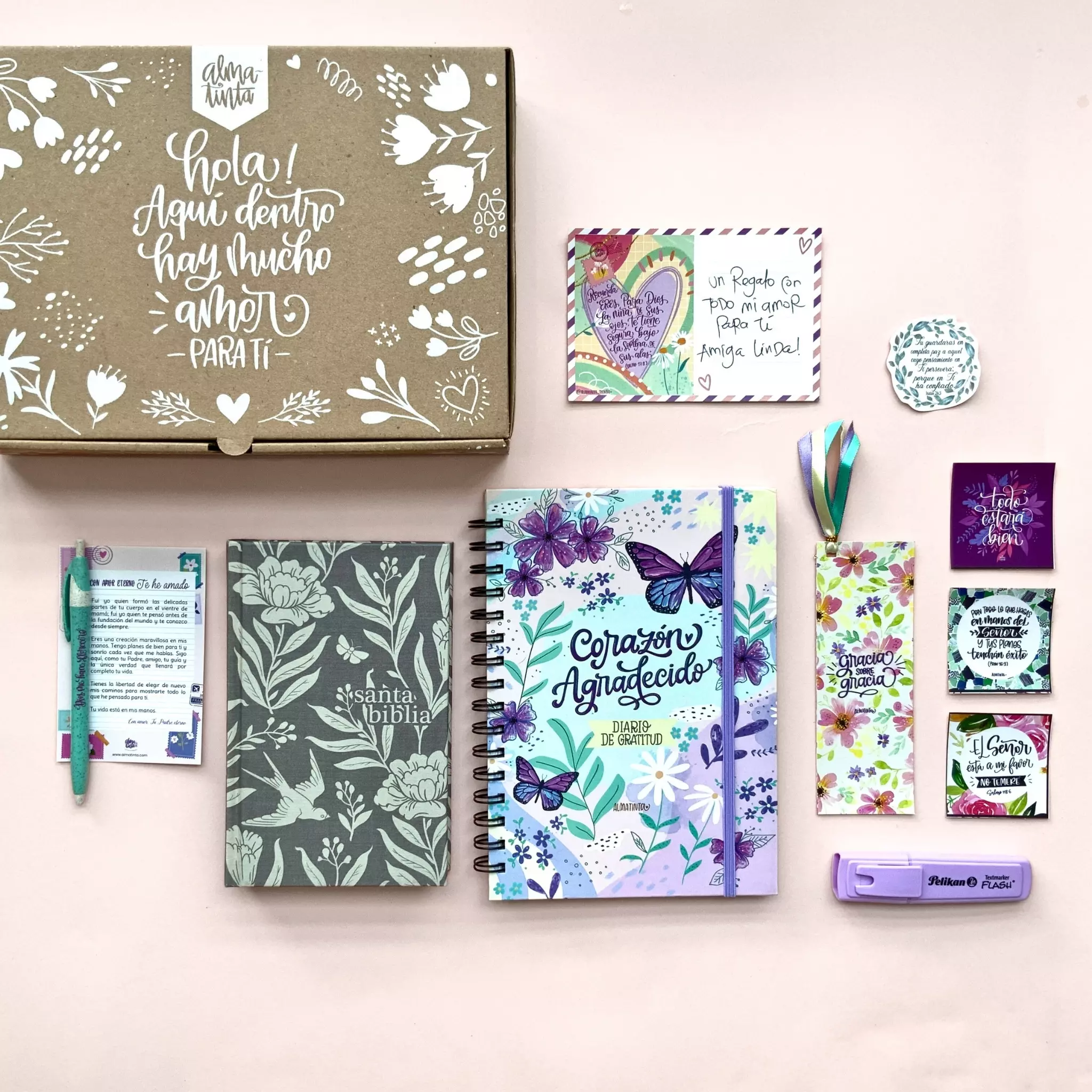 Listo para entregar, en su linda presentación y con artículos que sabemos que la harán sonreír. Todo empacado con todo el amor Almatinta. Puedes revisar el detalle de lo que contiene en la siguiente pestaña.
