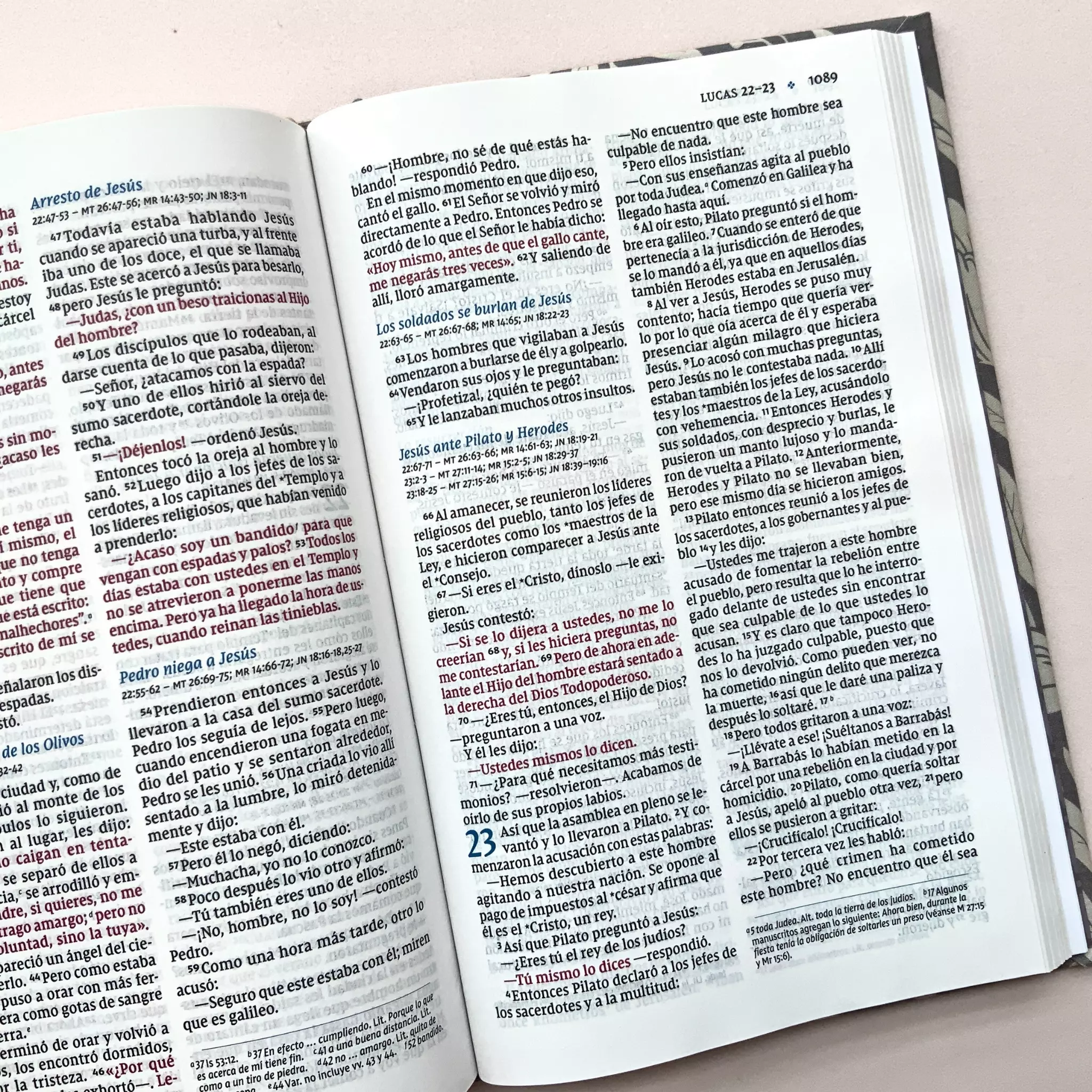 Práctica, moderna y con un diseño elegante: una compañera fiel para profundizar en la Palabra de Dios dondequiera que estés.