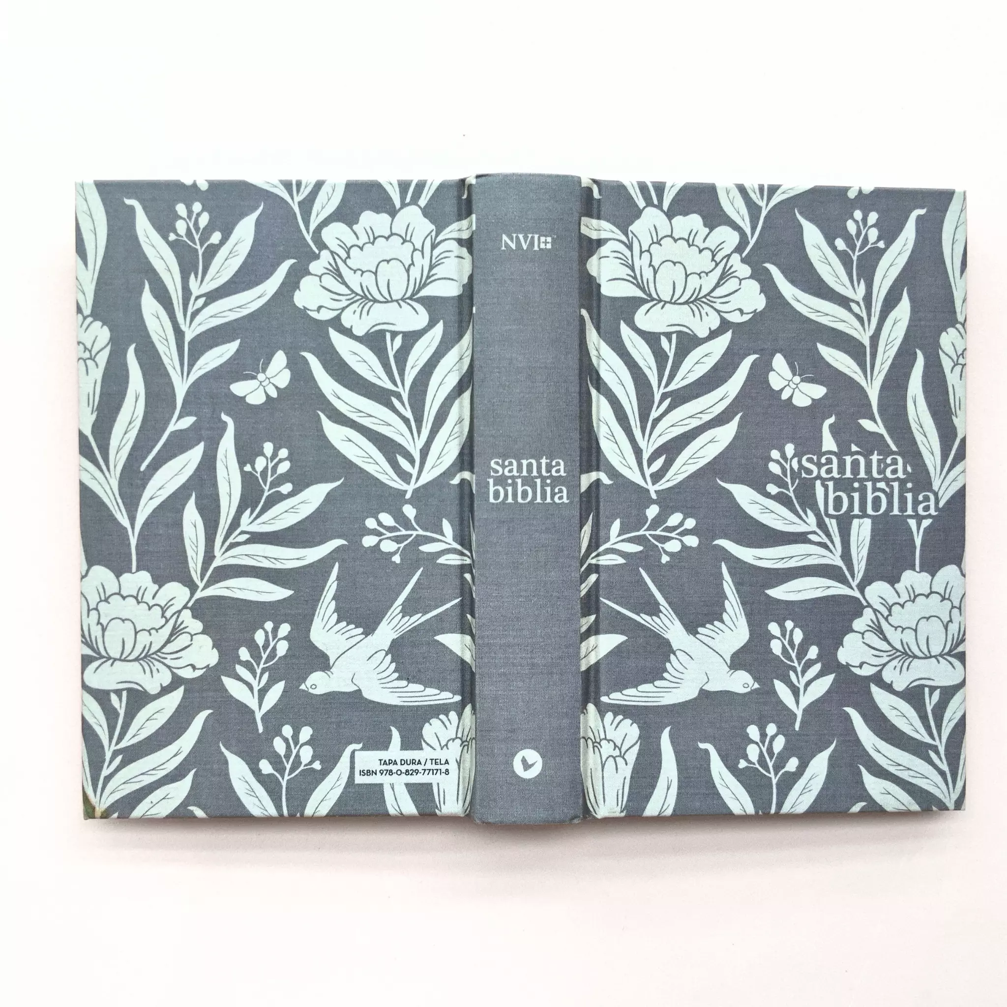 Kit Biblia NVI compacta – Pasta dura tela flores gris con Diario o devocional