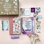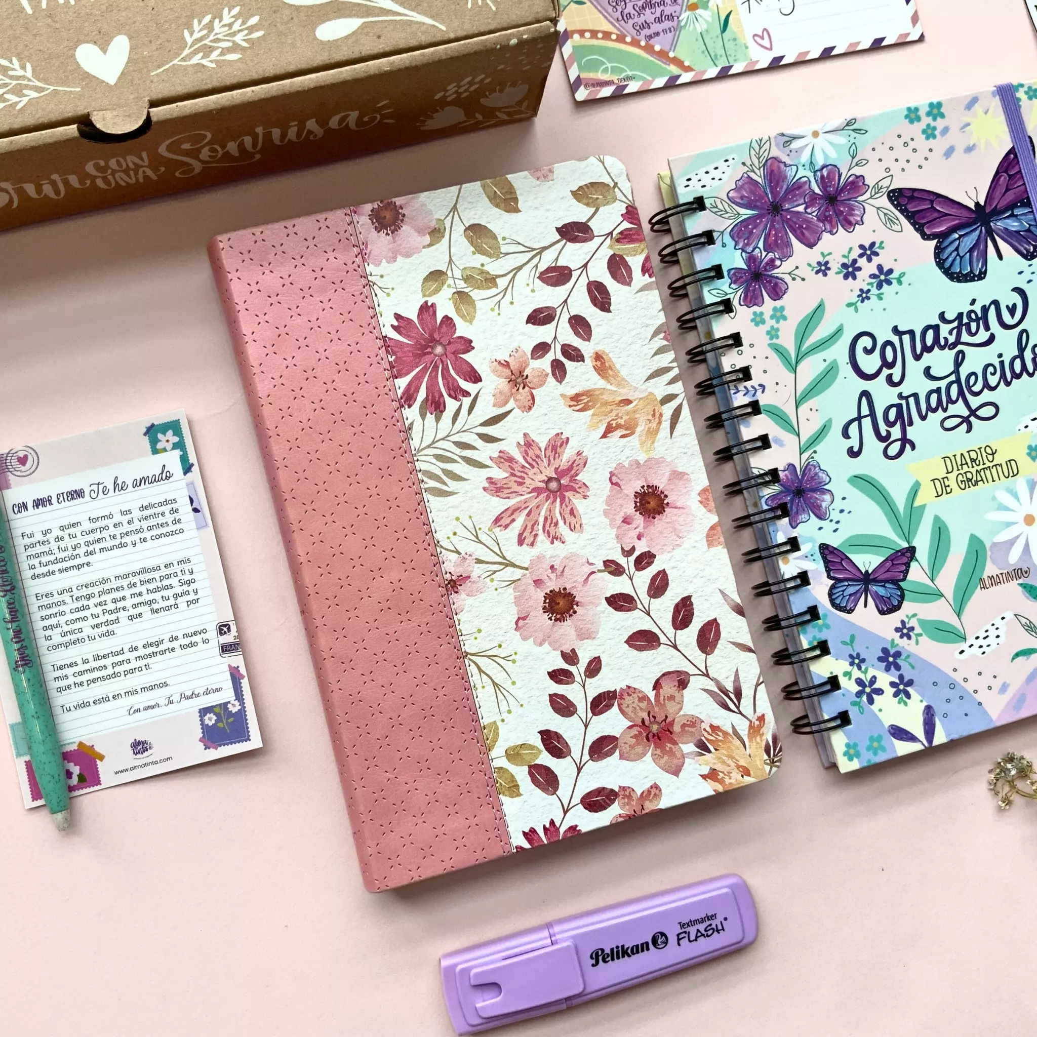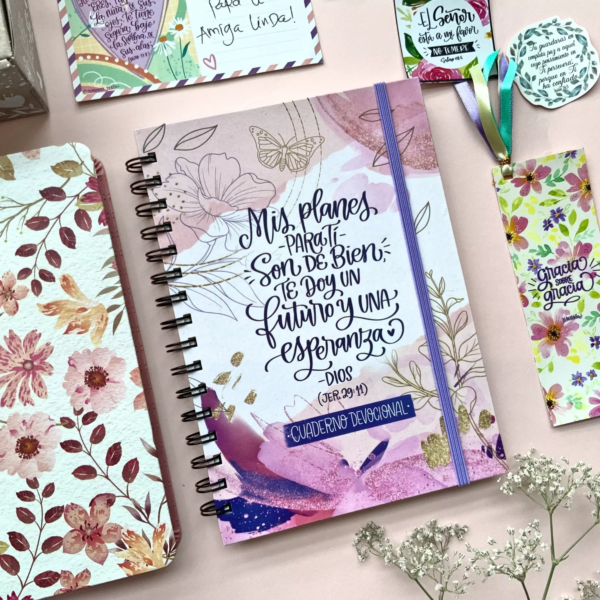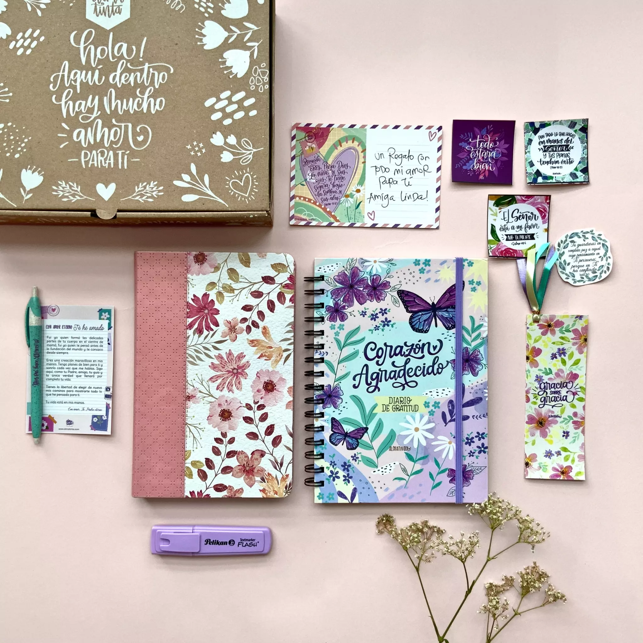 Listo para entregar, en su linda presentación y con artículos que sabemos que la harán sonreír. Puedes elegir adicional un cuaderno devocional para apuntar lo que aprende mientras estudia las escrituras, o bien un diario de gratitud para ejercitar su vida y dar gracias a Dios en todo tiempo. Todo empacado con todo el amor Almatinta. Puedes revisar el detalle de lo que contiene en la siguiente pestaña.- Cuaderno Devocional o diario de gratitud Almatinta, medida 16×22,5cm / 100 Hojas/200 páginas