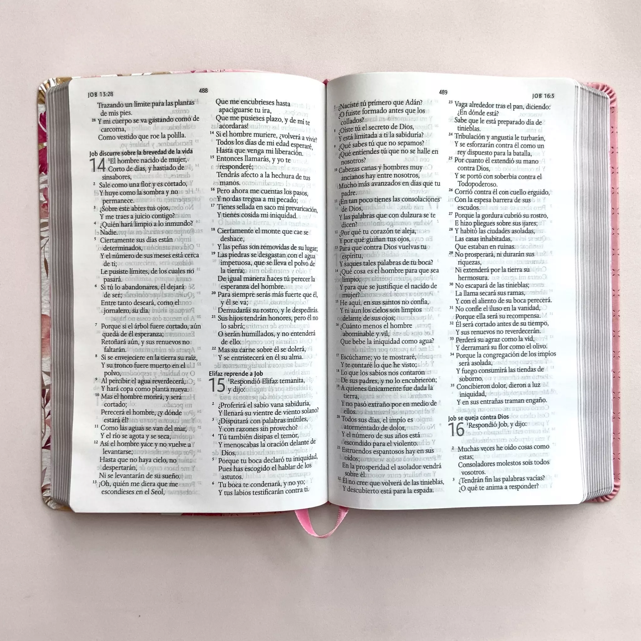 Con un delicado diseño en símil piel rosada con flores y cinta marcadora, esta Biblia RVR 1960 es perfecta para llevar contigo a todas partes o para dar como un regalo especial.