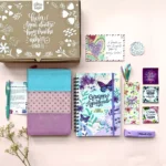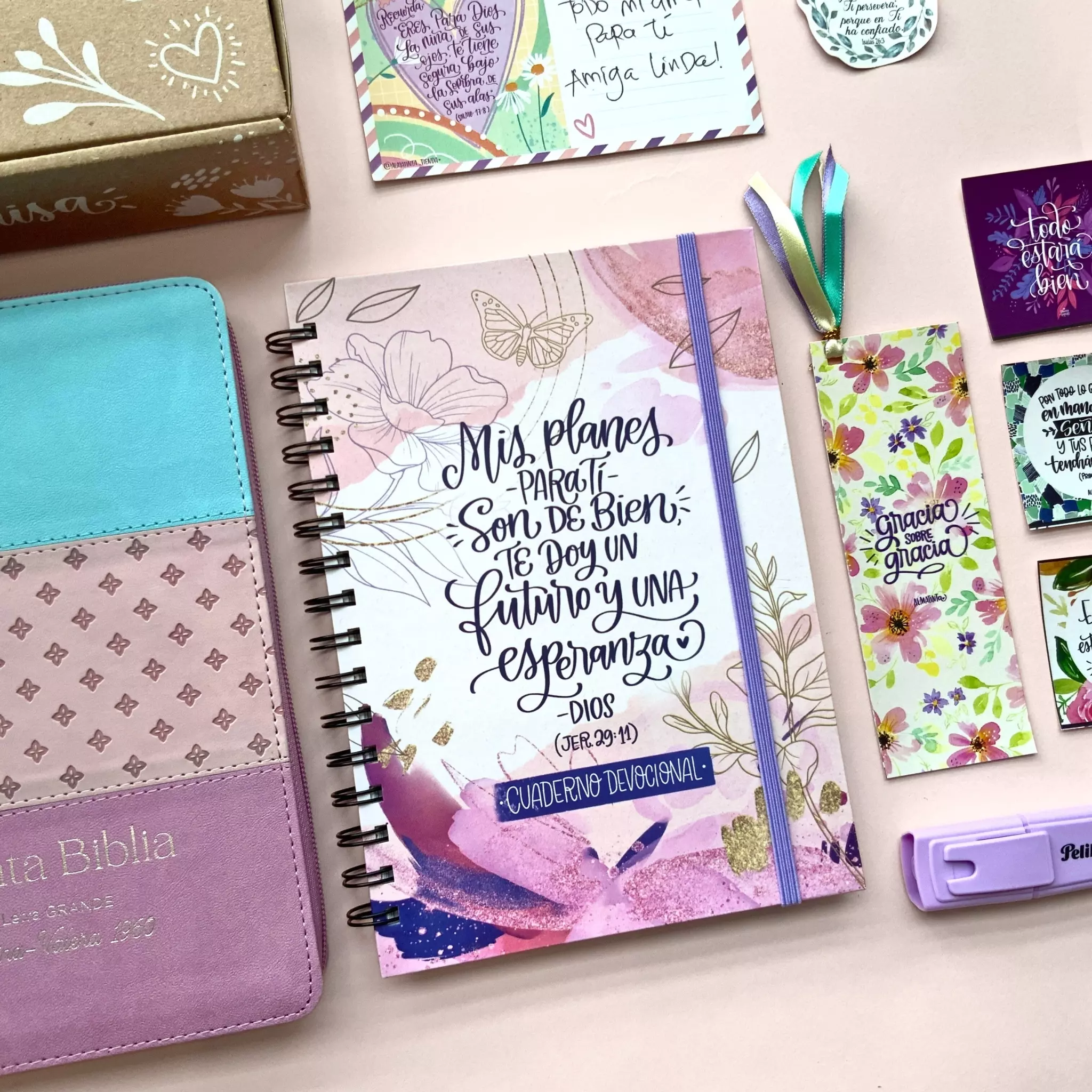 Listo para entregar, en su linda presentación y con artículos que sabemos que la harán sonreír. Puedes elegir adicional un cuaderno devocional para apuntar lo que aprende mientras estudia las escrituras, o bien un diario de gratitud para ejercitar su vida y dar gracias a Dios en todo tiempo. Todo empacado con todo el amor Almatinta. Puedes revisar el detalle de lo que contiene en la siguiente pestaña.Recibirás: