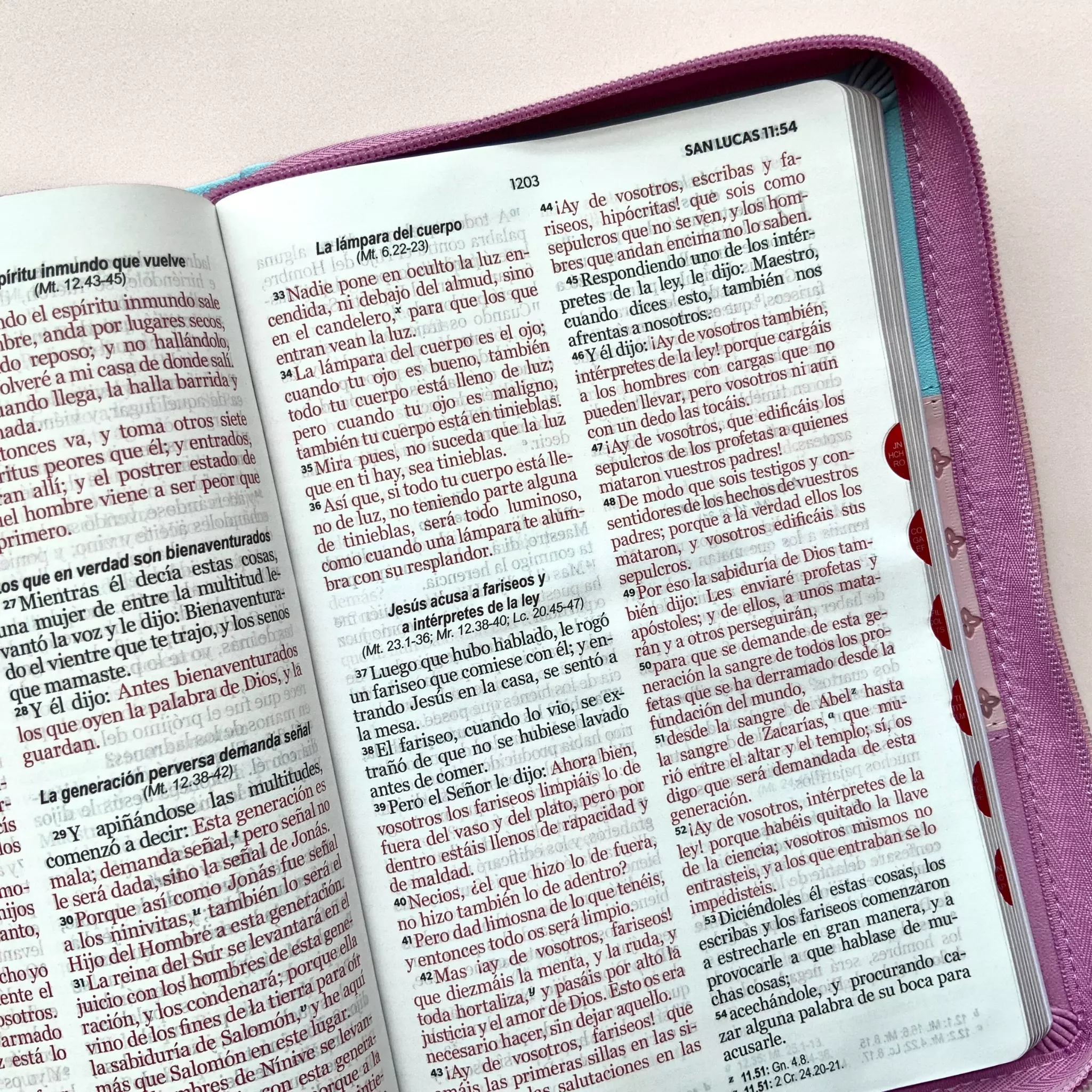 Esta edición en tamaño manual trae letra legible de 12 puntos, perfecta para una lectura cómoda. Además, incluye 32 páginas a todo color con ayudas prácticas, que enriquecerán tu comprensión y tu tiempo devocional.