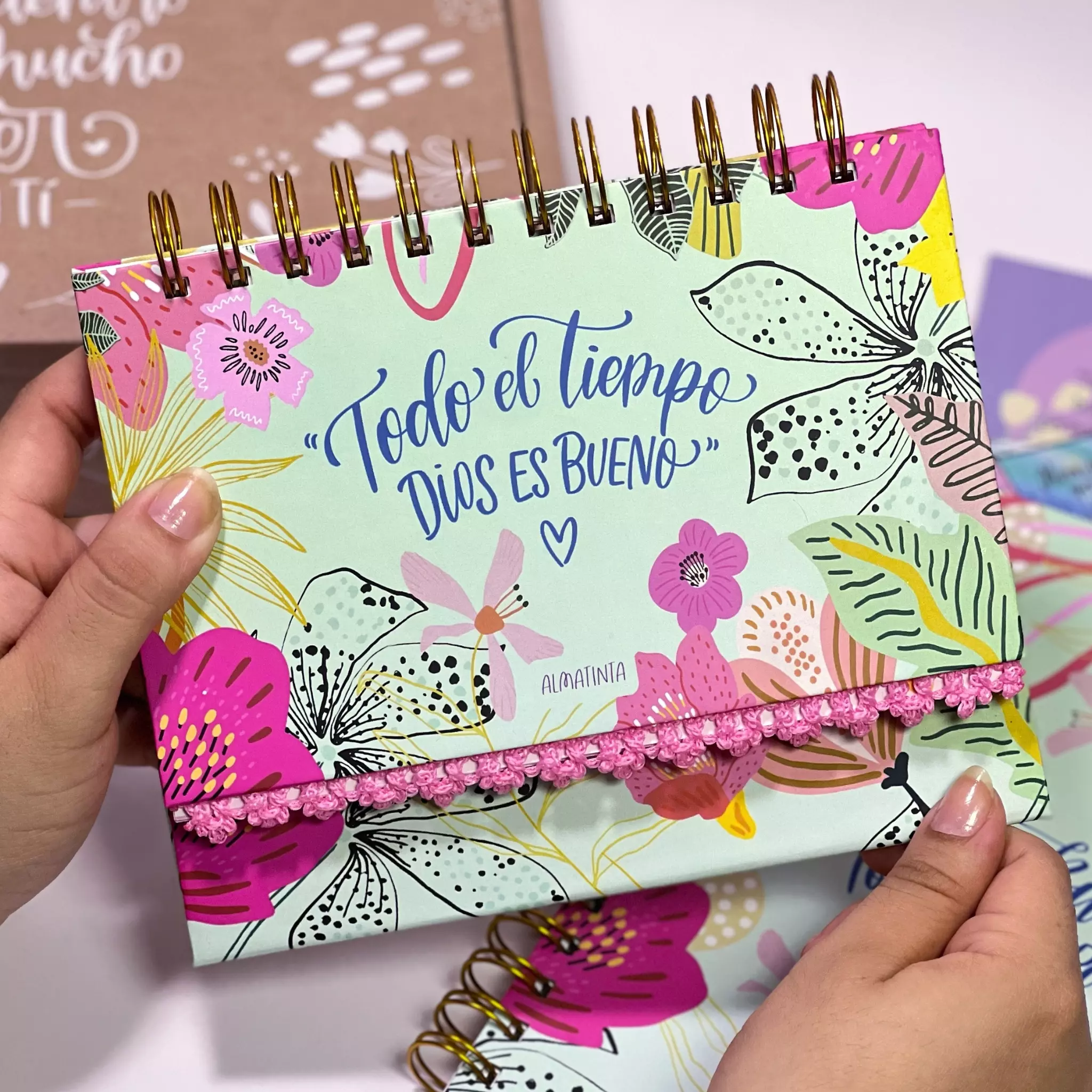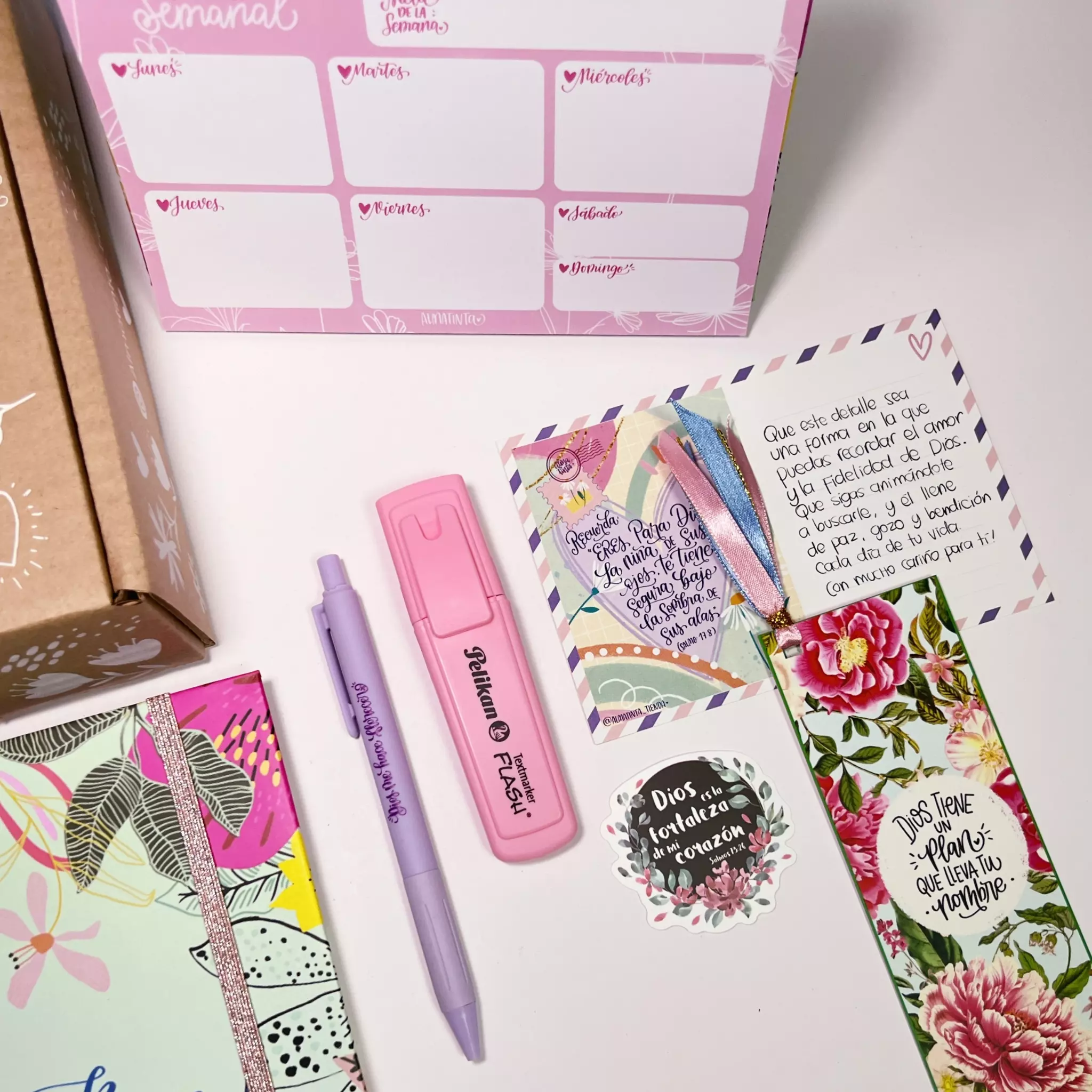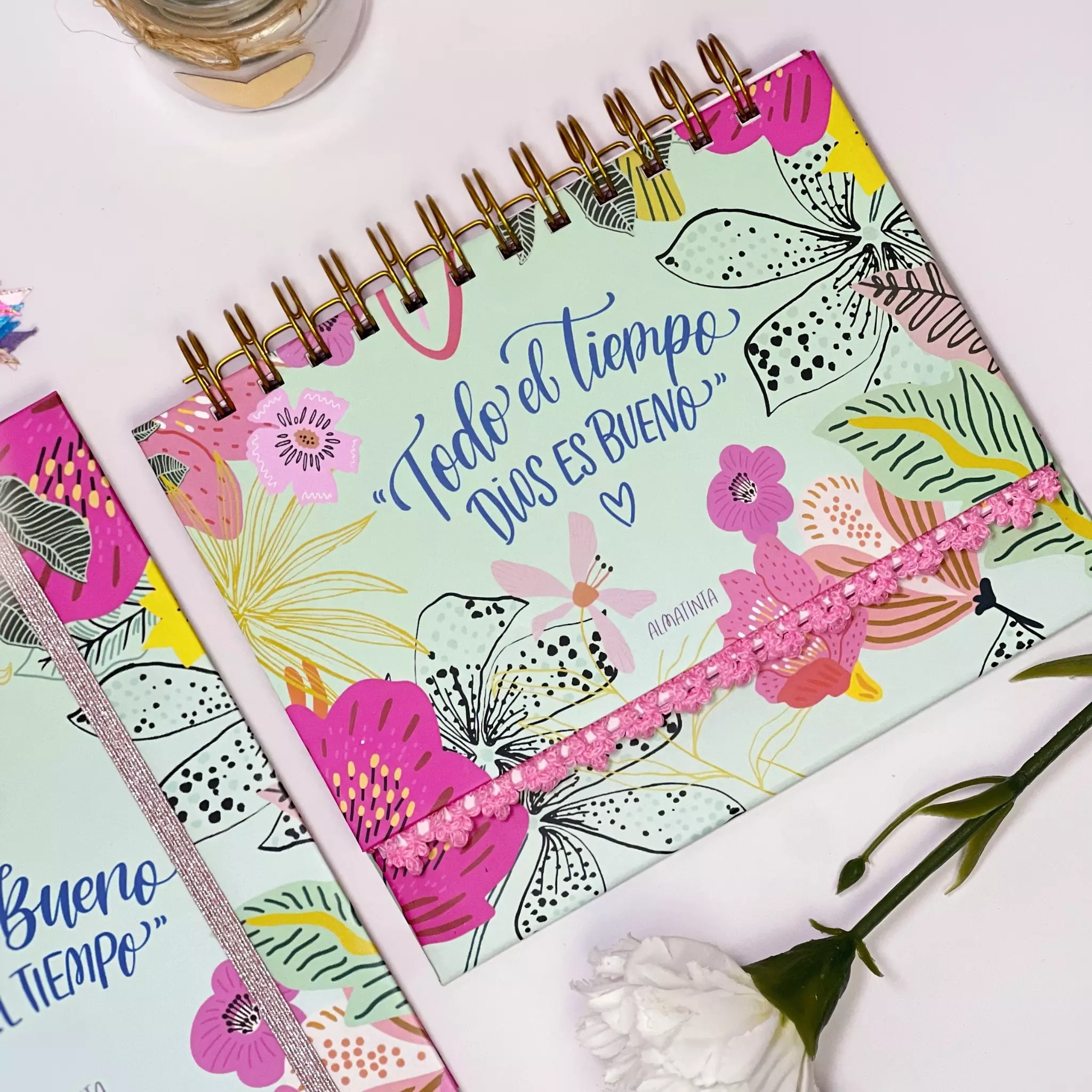 Un hermoso set para tu escritorio, donde podrás planear, descansar en las promesas de Dios y recordar que él es bueno. Este diseño es inspirado en esa buena práctica que tienen algunas comunidades cristianas que, entre los miembros nos recordamos la bondad de Dios con la pregunta: ¿Dios es bueno? y la respuesta es: Todo el tiempo! Pero si te preguntan: ¿Todo el tiempo? debes responder: Dios es bueno! Recuerda durante tu semana, realizar una total descarga de las tareas por hacer, y luego anota en tu semana las tareas más importantes. Manten abierto tu planeador en tu escritorio para que puedas recordarlas. Con 60 hojas, con el fin de que puedas usarlo durante un año completo. Listo para entregar, en su linda presentación y con artículos que sabemos que si es un regalo, harán sonreír a esta persona especial. Todo empacado con todo el amor Almatinta. Puedes revisar el detalle de lo que contiene en la siguiente pestaña.