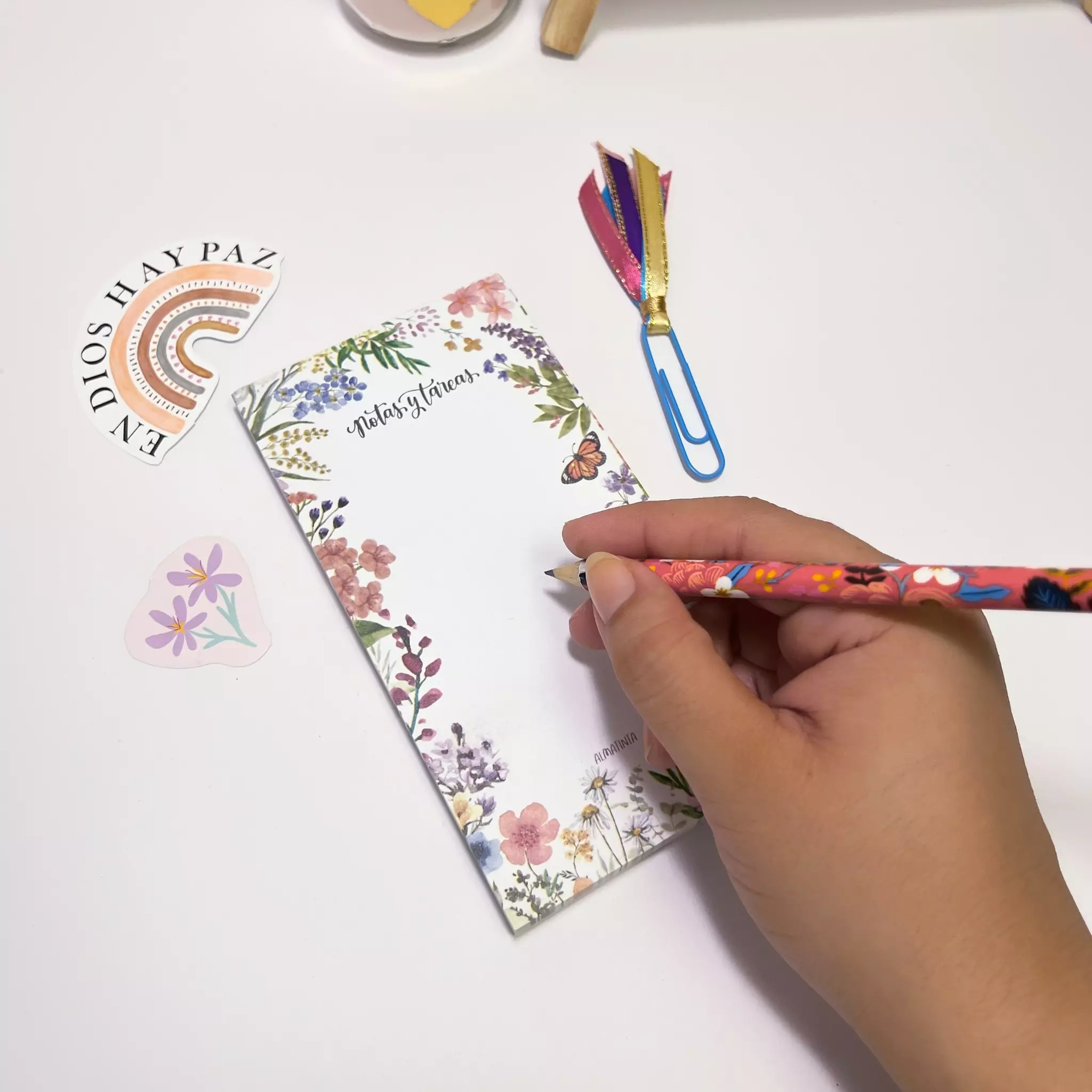 Un hermoso set que te servirá para organizar tus notitas e ideas. A veces, mientras trabajas, brotan algunas ideas y no es bueno que saltes de tarea en tarea tipo multitasking. Así que tener este NotePad en tu escritorio, es excelente para anotar lo que harás después. También te servirá para anotar el listado de tareas específicas que harás durante el día.